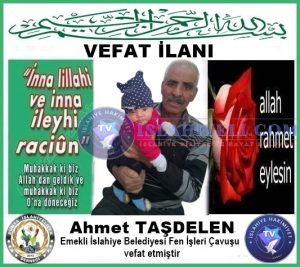 İslahiye Belediyesi Fen İşleri Çavuşluğundan emekli Ahmet Taşdelen (İhsan Taşdelen’in babası) hakkın rahmetine kavuşmuştur.